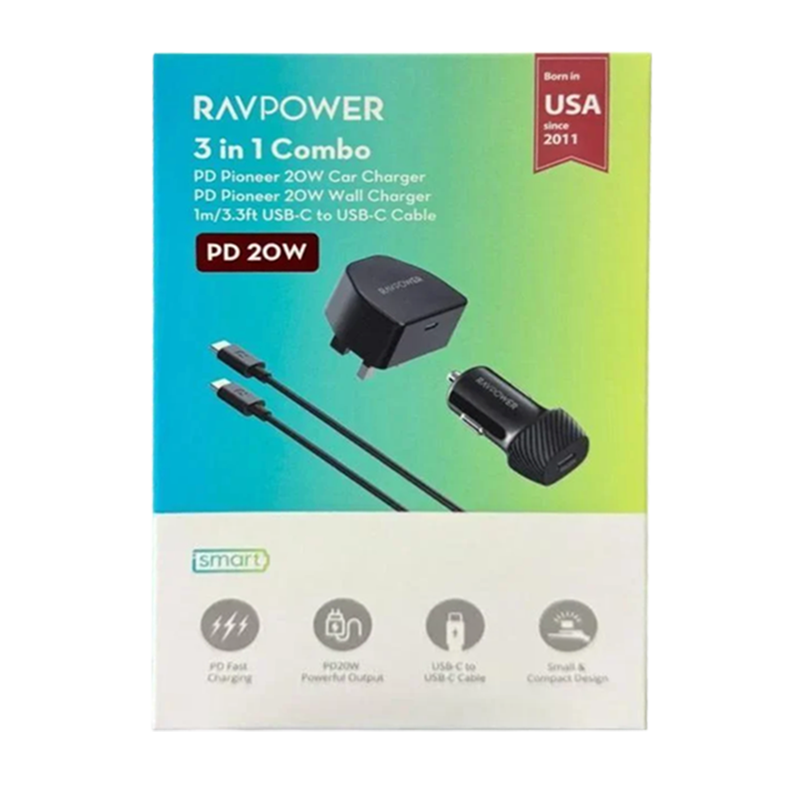 شاحن جداري + شاحن سيارة + كابل USB-C راف باور